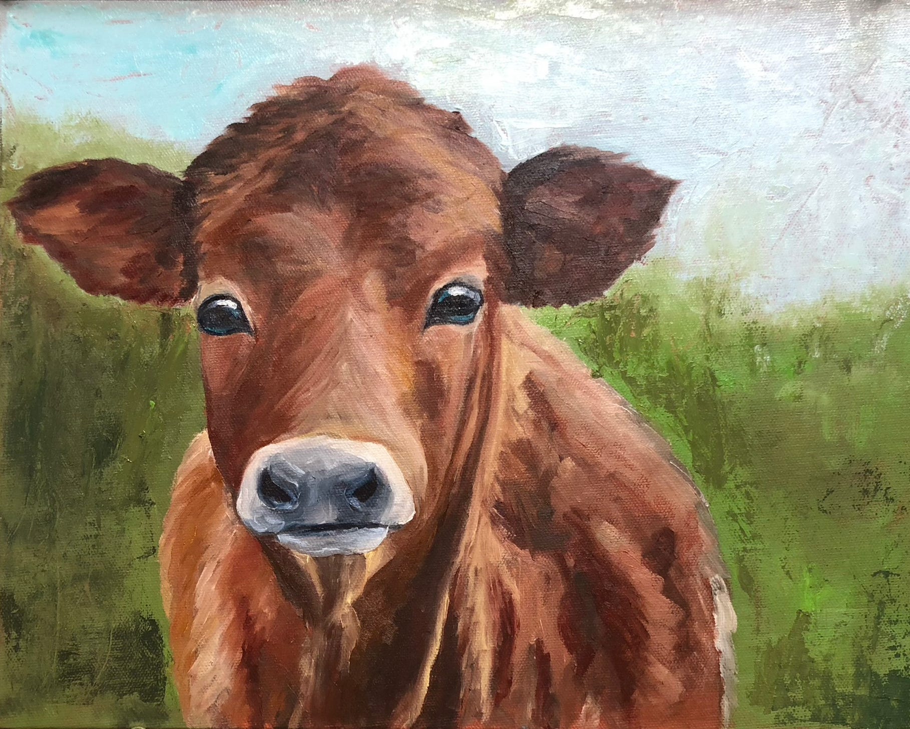 Calf. Oil, 11 x 14, Inspired from all the cattle I see on hikes.
